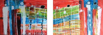 Een globale impressie van het schilderij "The visitors" 160x60cm.