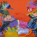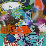 Acryl / mixed op linnen - abstract expressief werk - inclusief baklijst - kleurrijk