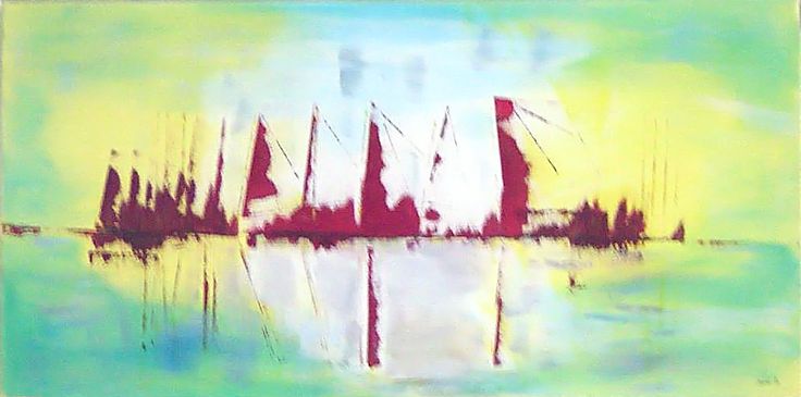 Acrylverf schilderij. Eilandjes in het wolderwijd bij Harderwijk