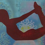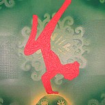 Een globale impressie van het schilderij "Lady in red" 100x100cm.