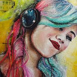 Een globale impressie van het schilderij "Amorada" 100x100cm.