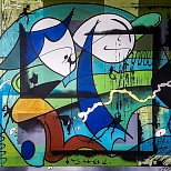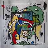 Een globale impressie van het schilderij "I will share it with you, provided you are careful with it" 120x100cm.