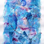 Een globale impressie van het schilderij "Red Lady" 95x95cm.