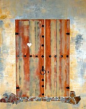 Geschilderd met acryl op linnen en met applicaties, zoals schroeven, deurklemmetjes, kleine stukjes leisteen!