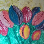 Een globale impressie van het schilderij "Black Tears" 50x50cm.