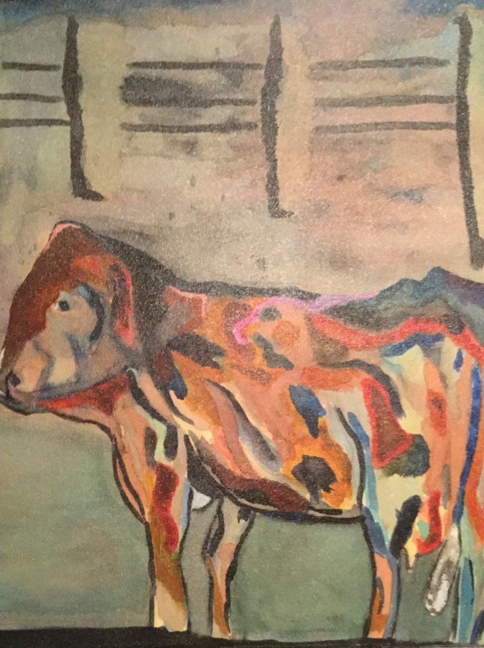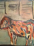 Een globale impressie van het schilderij "Ecoline op doek kleuren koe" 50x60cm.