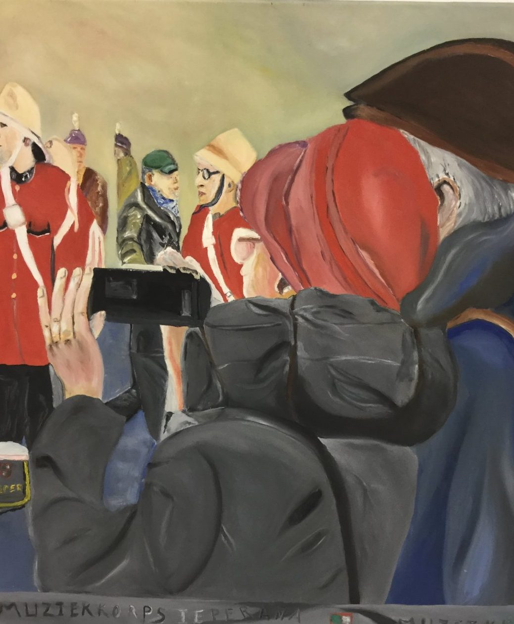 Een globale impressie van het schilderij "Fotonemen op de markt ieper" 60x70cm.