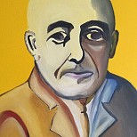 Een globale impressie van het schilderij "Marlene der blauwe engel" 30x40cm.
