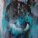 Een globale impressie van het schilderij "Geabstraheerd portret" 75x155cm.