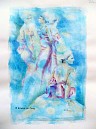 Jacqueline, getekend naar levend model op zwaar wit papier. Acryl, en potlood.