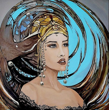 Een globale impressie van het schilderij "Dream Woman" 90x90cm.