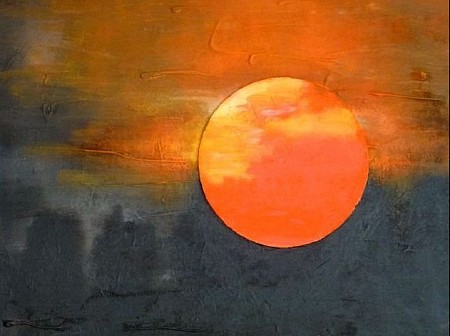 Een globale impressie van het schilderij "Zon" 70x50cm.
