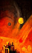 Dit schilderij is geschilderd op linnen, met acrylverf. Ik heb me laten inspireren door de Zon en de planeten, Mars en Pluto.
