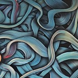 Een globale impressie van het schilderij "Unruliness" 100x100cm.