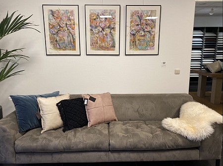 I can buy myself Flowers . 3 Luik . 3 x schilderij 50x 70 met paspartout. Met zwarte lijst en glasraam en ophangsysteem .