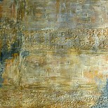 Een globale impressie van het schilderij "Red - Grey and White" 100x100cm.
