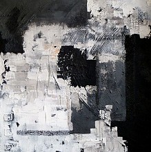 Silver spot is een abstract schilderij in de kleuren grijs, zwart en wit met