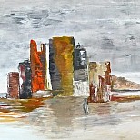 Een globale impressie van het schilderij "Landschap-abstract!" 100x65cm.