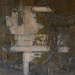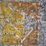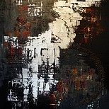 Kleurig doek, maar toch rustig, prachtig gelaagd.